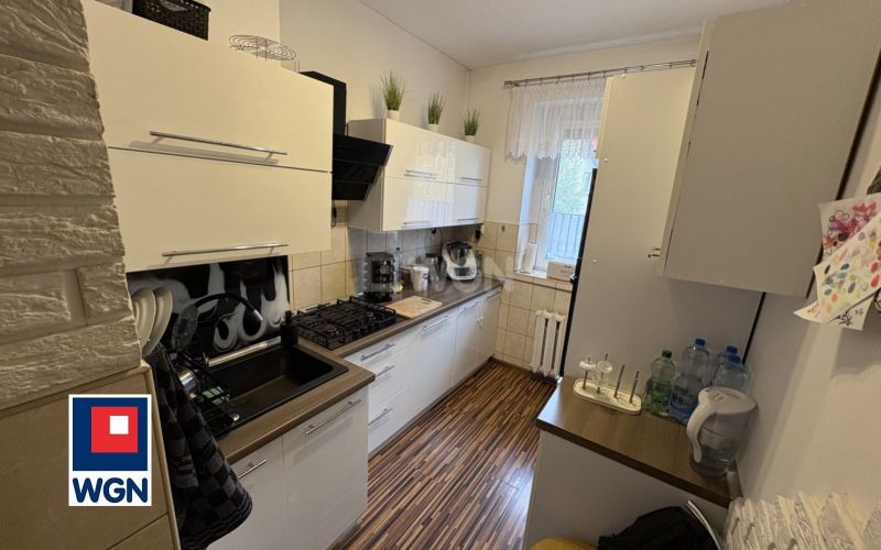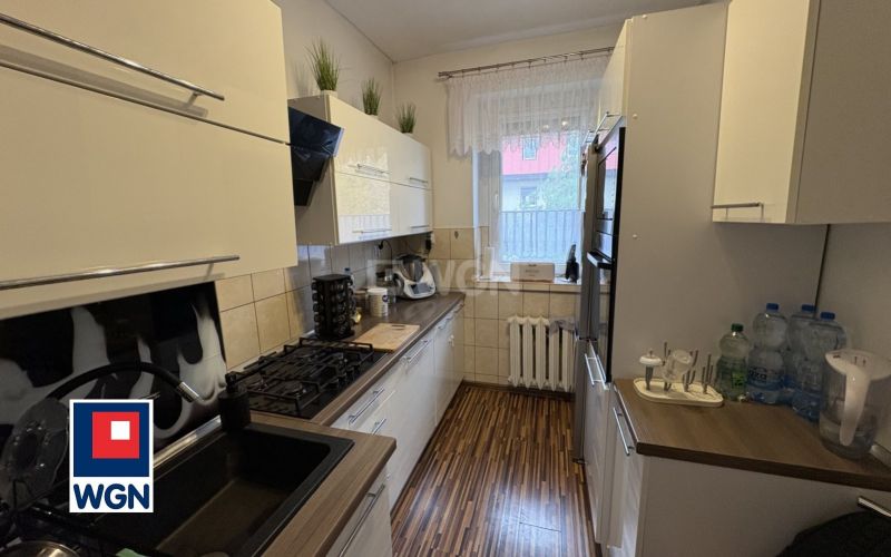 Oddzielna kuchnia - w pełni wyposażona, funkcjonalna i schludna. Znajdują się tu wszystkie niezbędne sprzęty AGD: kuchenka gazowa z piekarnikiem, lodówka, czajnik elektryczny. Dodatkowym atutem jest komplet podstawowego wyposażenia, takie jak sztućce czy kubki - idealne rozwiązanie `na start`, dzięki któremu nowi właściciele mogą od razu zamieszkać bez konieczności zakupów.